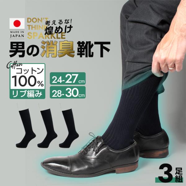 3足組 28〜30cm 厚手 消臭靴下 大きいサイズ 日本製 靴下 セット メンズ 綿100% 日本製 消臭 防臭 臭わない 紳士 男性 ビジネスソックス 蒸れない