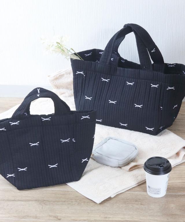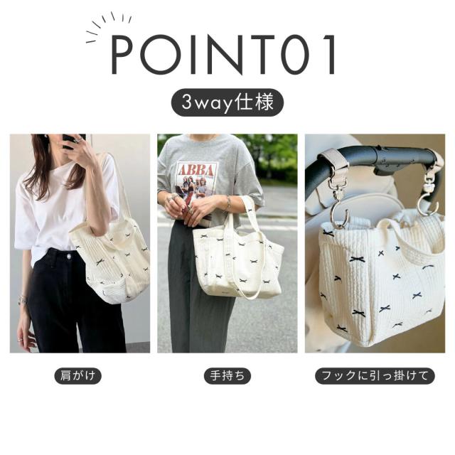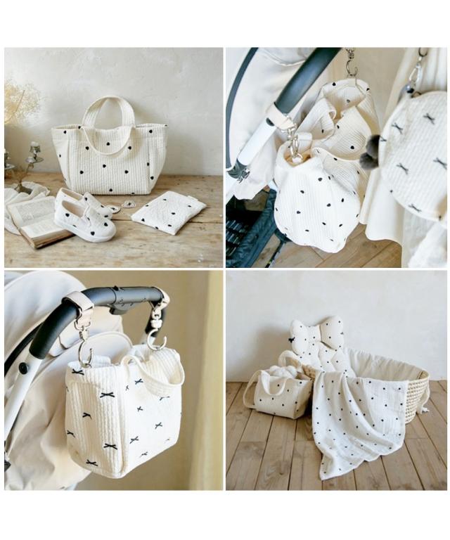 【2サイズ展開/ベビーカーフック取付パーツ付き♪ミニリボンヌビトートバッグ/マザーズバッグ/サブバッグ】