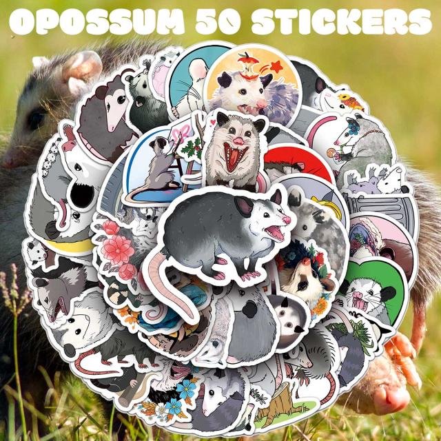 オポッサム ステッカー 50枚セット PVC 防水 シール フクロネズミ コモリネズミ 死んだふり ペット 動物