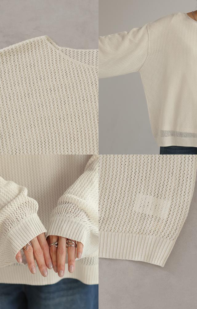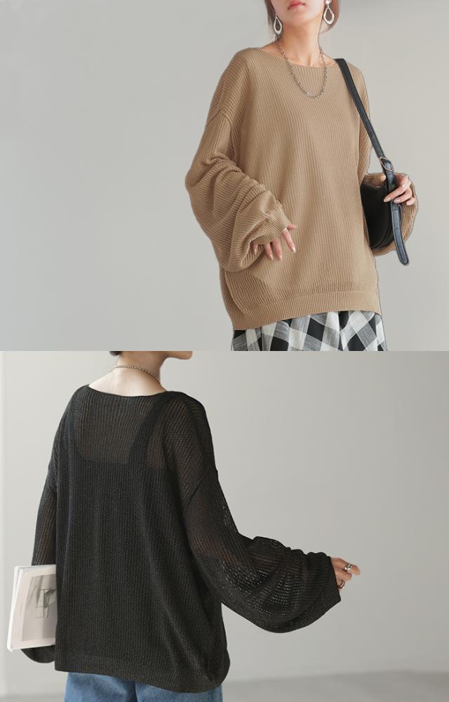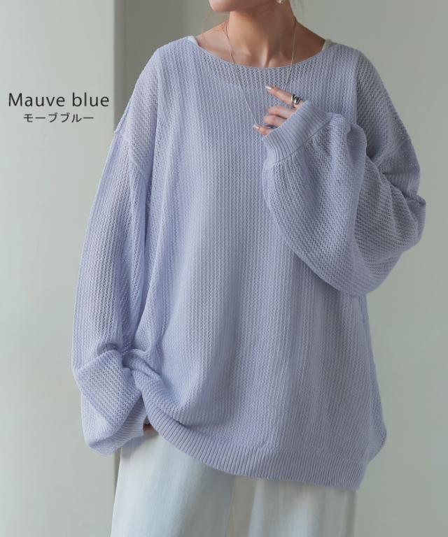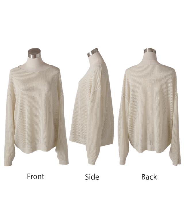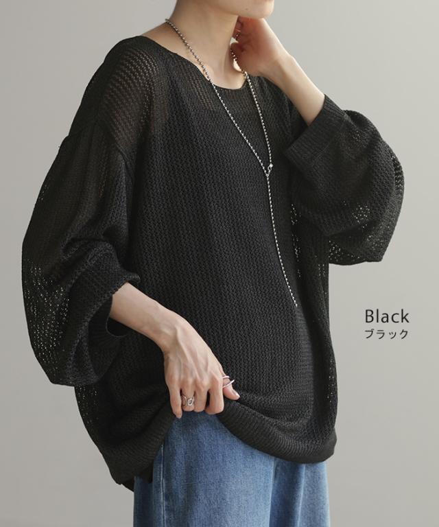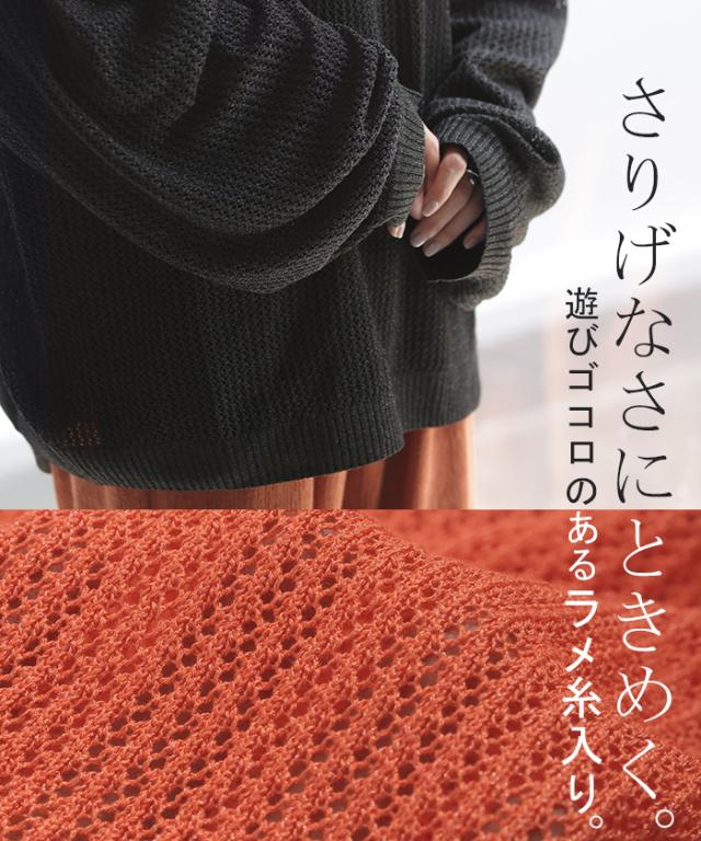 ニット シアー メッシュ レディース トップス 透け チュニック Uネック オーバーサイズ レイヤード 重ね着 メッシュニット 透かし編み シアーニット ストレッチ ラメ 長袖 ボリュームスリーブ ドルマン 大きいサイズ 体型カバー 白 黒 春 夏 HUG.U 秋新作