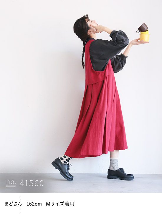 [me] 私の赤いワンピース レディース ジャンパースカート ジャンスカ ノースリーブ ロング フレア Aライン Vネック