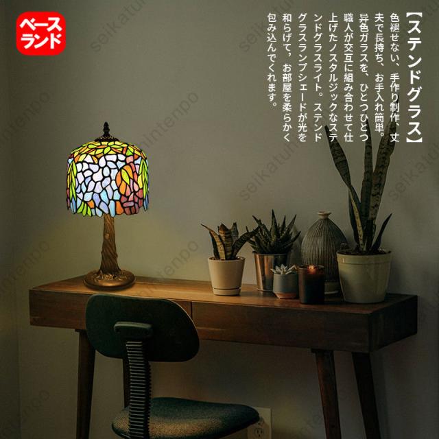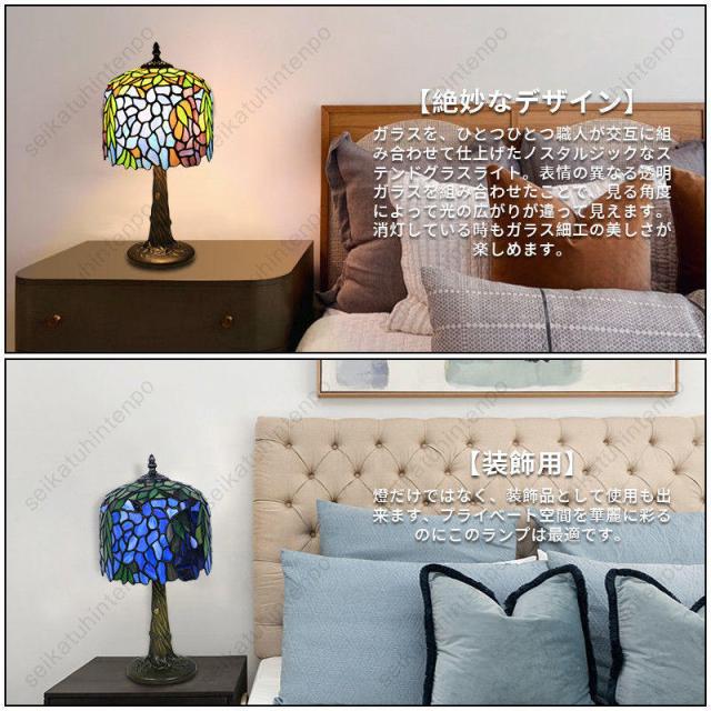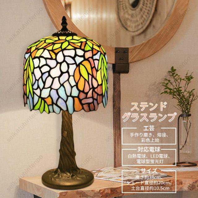 ステンドグラスランプ テーブルライト 卓上照明 ベッドライト ティファニーライト インテリア アンティークカフェ風 レトロ LED対応