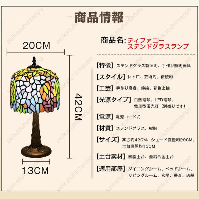 【ステンドグラス】色褪せない、手作り制作、丈夫で長持ち、お手入れ簡単。?色ガラスを、ひとつひとつ職人が交互に組み合わせて仕上げたノスタルジックなステンドグラスライト。ステンドグラスランプシェードが光を和らげて、お部屋を柔らかく包み込んでくれます。