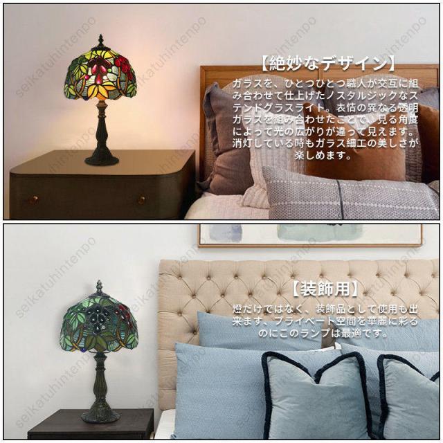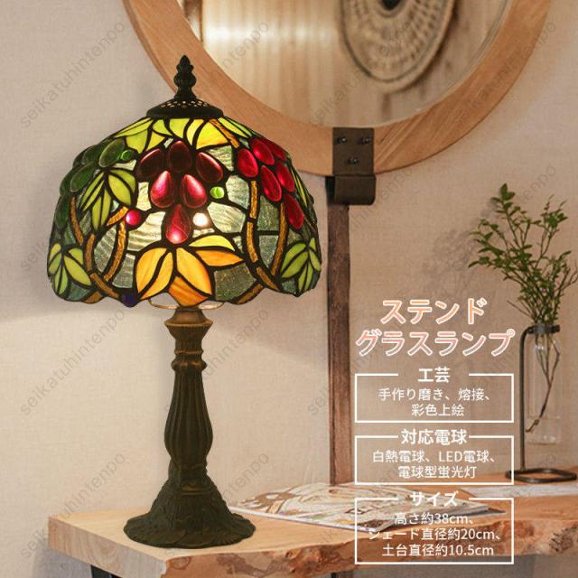 ステンドグラス ランプ スタンド照明 ベッドライト ティファニー 卓上照明 アンティークカフェ風 田舎風 レトロ 1灯