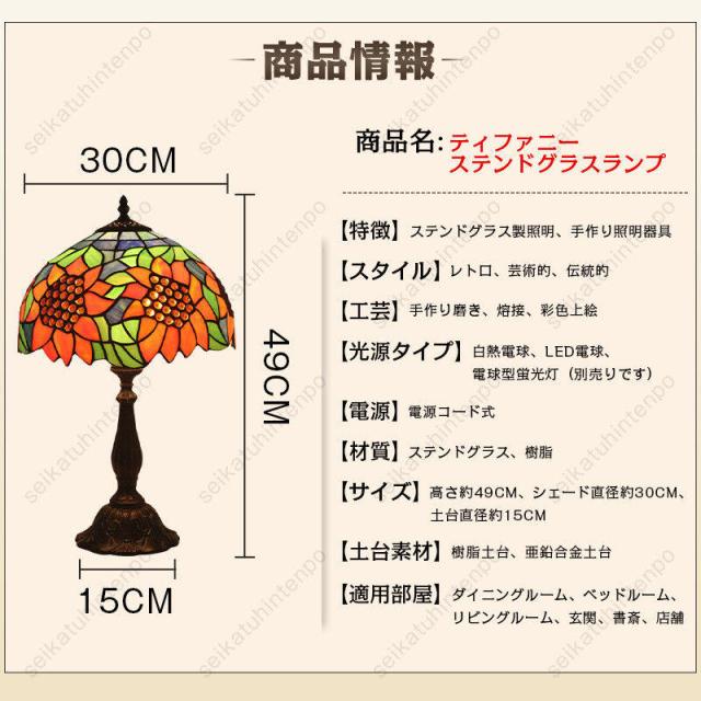 【多用途】玄関、トイレ、通路、階段、流し元、ベットサイド、ダイニングルーム、書斎などの1灯照明としてピッタリ。リビング、ダイニングなど広めの場所の主役照明。レトロな雰囲気が感じられるステンドグラス風シェードのテーブルランプ。