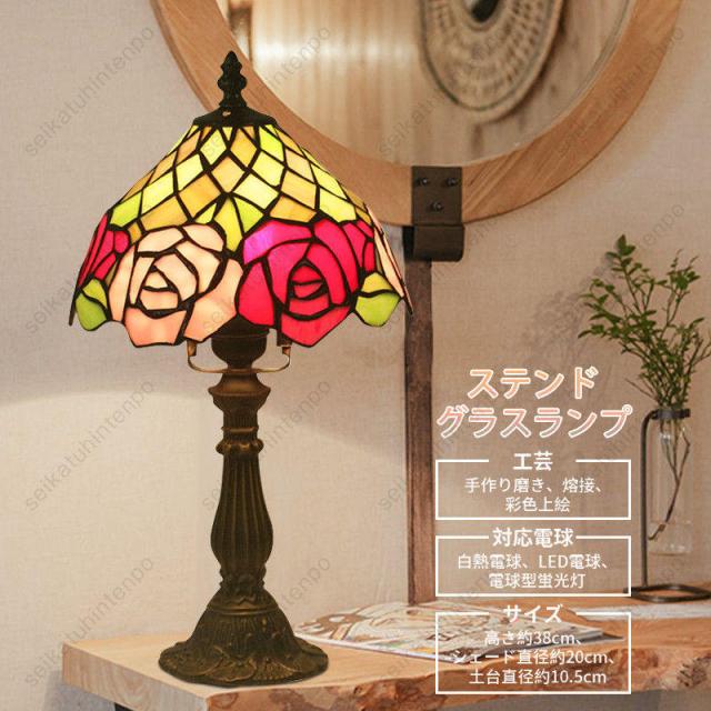 ステンドグラス ランプ スタンド照明 おしゃれ 卓上照明 アンティークカフェ風 手作り 田舎風スタンドライト 1灯