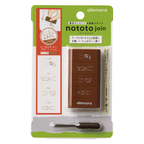 ・テーマに合わせた四つの絵柄のスタンプが一つになっているので、手帳やノートの用途に合わせて選びやすくなっています。