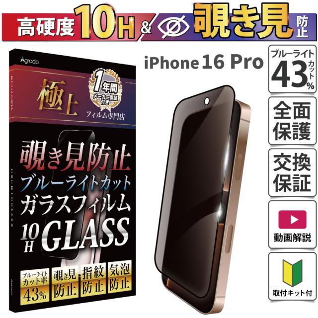 iPhone 16 Pro ガラスフィルム 全面保護 覗き見防止 ブルーライトカット かんたん 安心 日本製 スマホフィルム 強化ガラス のぞき見 保証 アイフォン アイホン ポイント消化 除き見 おまけ付き 防水ケース