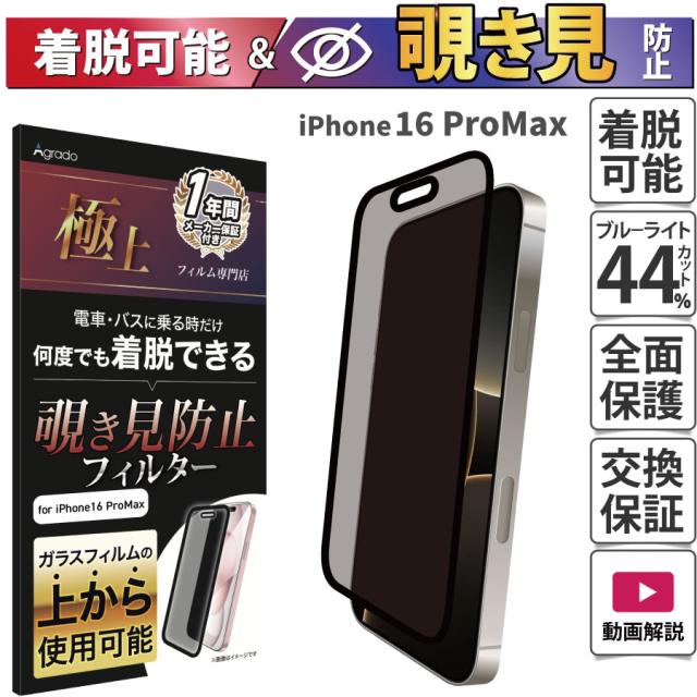 iPhone 16 ProMax 覗き見防止 フィルムの上からでも貼れる 着脱式フィルター さらさら ブルーライトカット かんたん 安心 プライバシー 全面保護 スマホフィルム アンチグレア のぞき見防止 保証 アイフォン アイホン ポイント消化 除き見