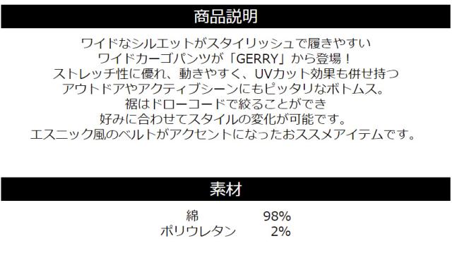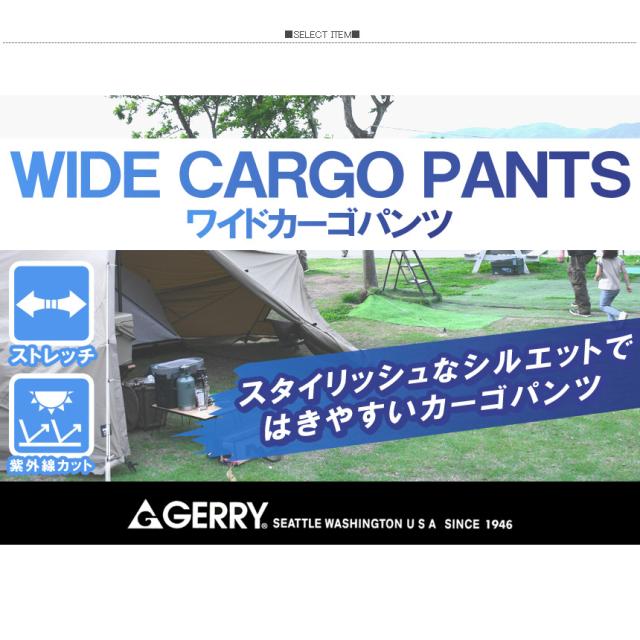 GERRY ジェリー ストレッチ ワイドカーゴパンツ メンズ UVカット 紫外線カット カジュアル アウトドア ブランド キャンプ DIY 【RA1-1337】 送料無料 通販A3