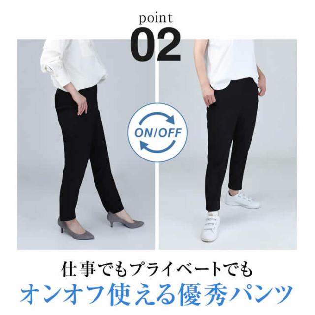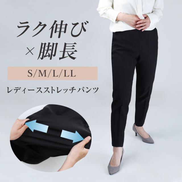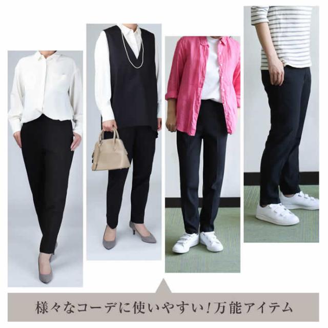 レディース パンツ きれいめ ストレッチ センタープレス メール便で送料無料 2枚は2通 sun-ux-pnt-1946 イージーパンツ ボトムス テーパード ブラック オフィスカジュアル ウエスト ゴム オフィス OL ポケット付