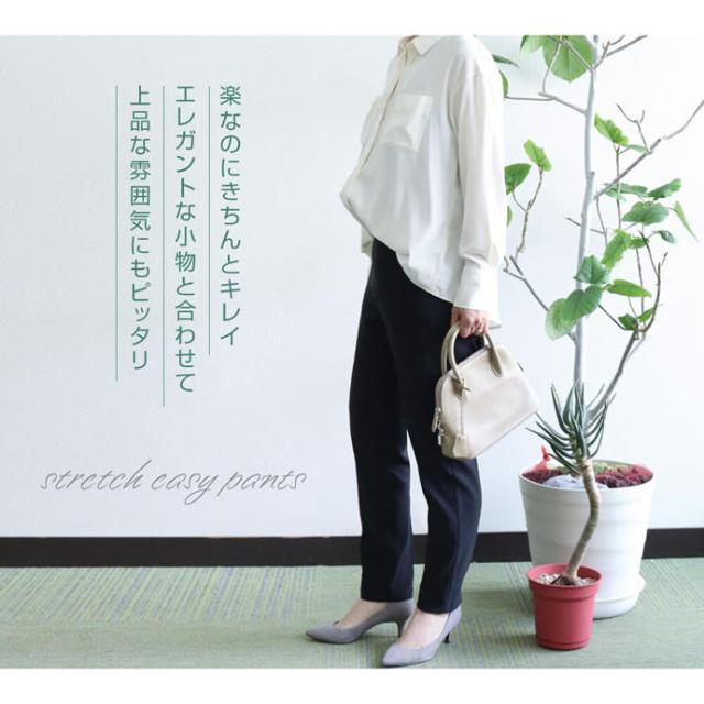 オフィススタイルやカジュアルコーデと幅広いコーデで活躍するオススメのレディースセンタープレス&テーパードデザインが美脚効果抜群のイージーパンツです。