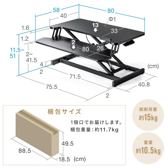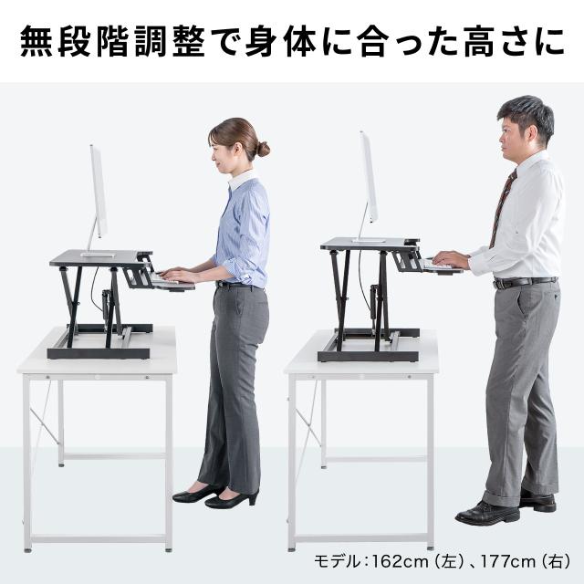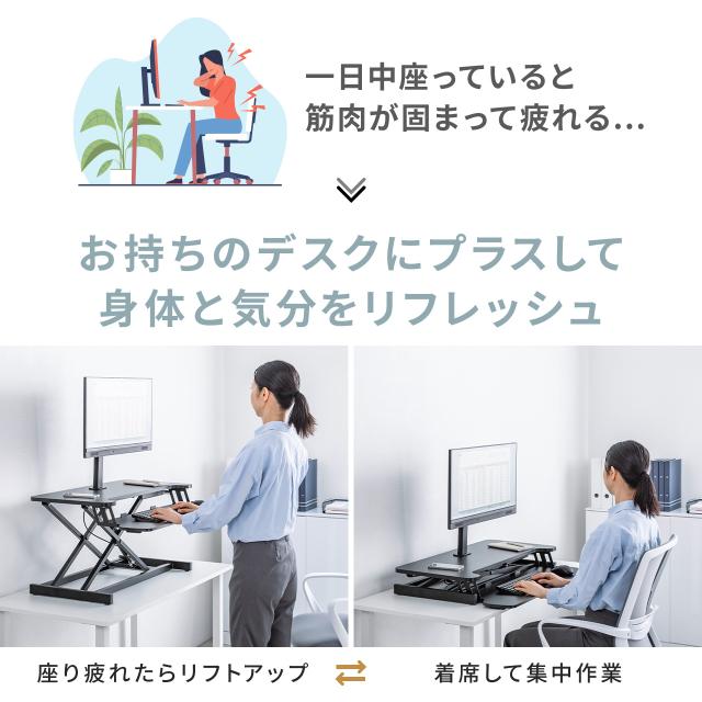 ⇒ご購入の前にご確認下さいお持ちのデスクに設置できる上下昇降が可能なスタンディングデスク。手元のレバーで簡単に上下昇降可能。天板幅80cm仕様。エルゴノミクスデザインで、キーボード台としても使えるサブテーブル付き。ローテーブルとしても使用できるスタンディングデスク。【WEB限定商品】