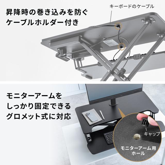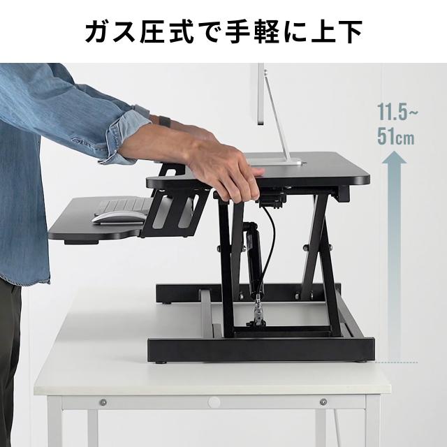 スタンディングデスク リフトアップデスク 卓上 ガス圧昇降 幅80cm モニターアーム取付対応 高さ調整11.5〜51cm キーボード台 作業台[100-MR205BK]