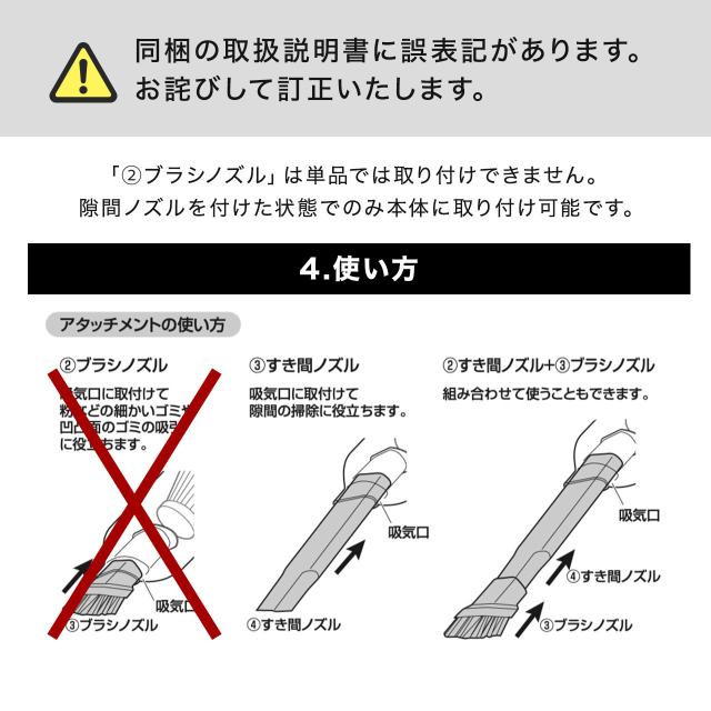 ■付属品:すき間ノズル、ブラシノズル、エアダスターノズル、エアダスターブラシノズル、エアノズル、ワイドエアノズル