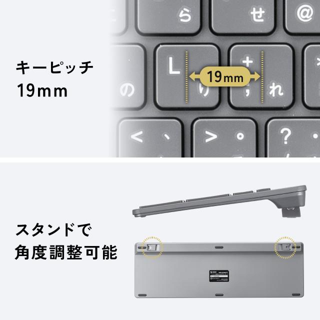 ソーラー充電 Bluetoothキーボード パンタグラフ 静音 テンキー付き フルキーボード Win Mac iOS対応 ワイヤレス 無線 日本語配列 マルチペアリング エコ グレー[400-SKB077]