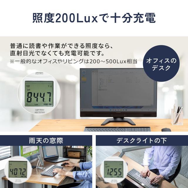 ※充電には200lux以上の明るさが必要です。