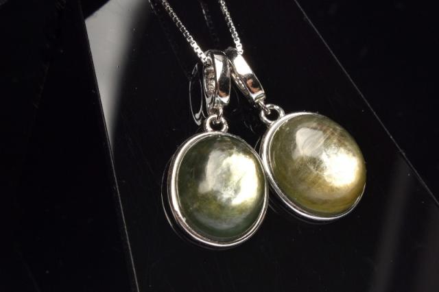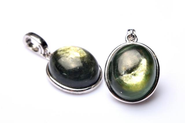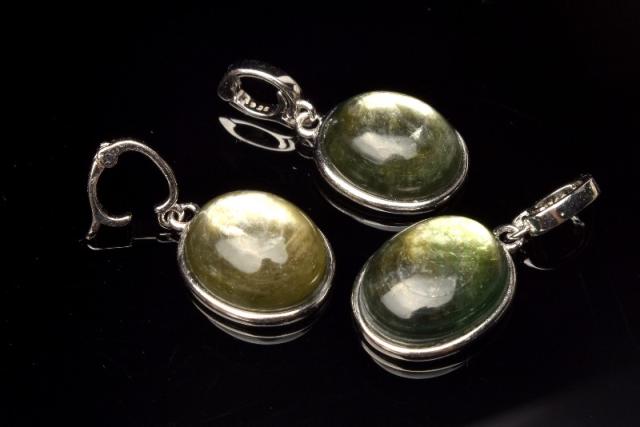 シルバー925◇雲母の輝き グリーンマイカ(フックサイト) 12-13x10mm オーバル ペンダントトップ 1個売り _PRG2021