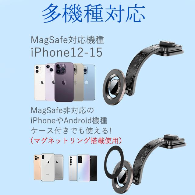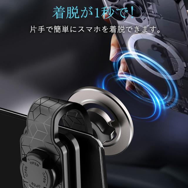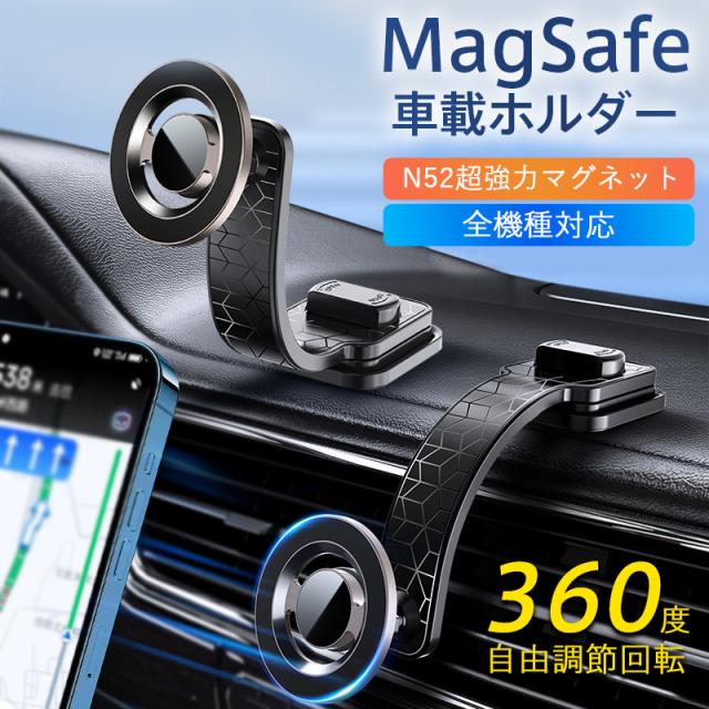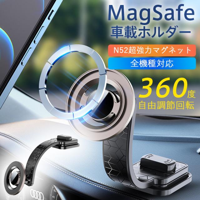 車載ホルダー 車載スマホホルダー 360度回転 マグネット 車載 超強力 Magsafe 片手操作 カー用品 取り付け簡単 コンパ