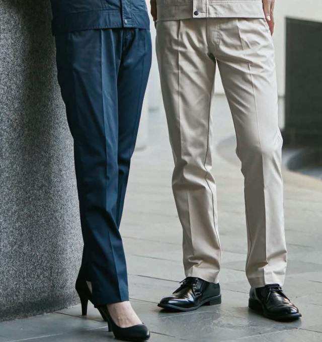 ペットボトル再生繊維を使用したスタイリッシュなエコストレッチワークウェア