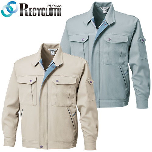 再生ペット繊維50%以上、エコマーク商品、グリーン購入法対象商品、制電、ストレッチ、汚れに強い、撥水、裏綿