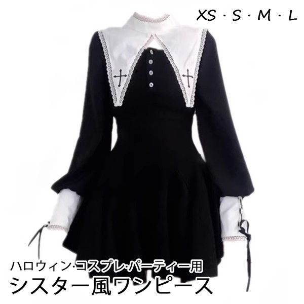 ワンピース ロリータ ハロウィン シスター風 ショート丈 ミニ レディース ゴスロリ ハイウエスト Aライン 暗黒風 ロリィタファッション 長袖 ロリータワンピース コスチューム コスプレ 衣装 洋服 可愛い セクシー 日常 仮装 パーティ イベント ステージ 文化祭 学園祭 春秋用 ブラック 大きいサイズ da495m4m4lc