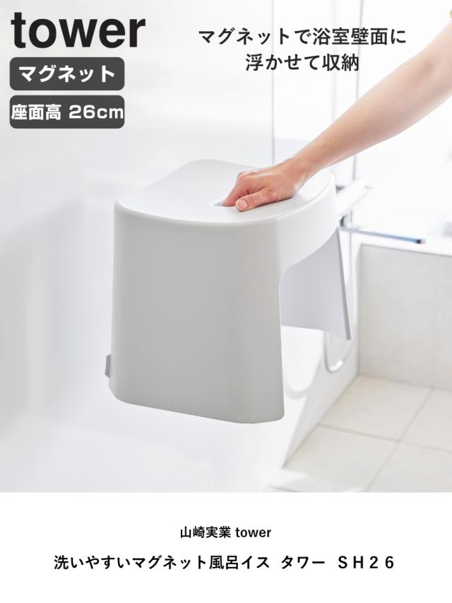 tower 山崎実業 洗いやすいマグネット風呂イス タワー SH26 ( タワーシリーズ 風呂いす バスチェア 風呂椅子 マグネット 風呂イス 浴室 壁面 壁面収納 浮かせて収納 浮かせる収納 tower お風呂)