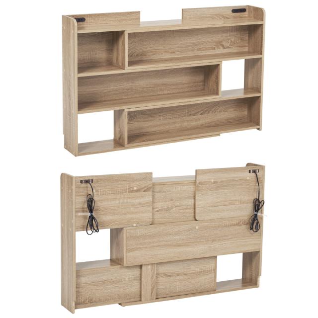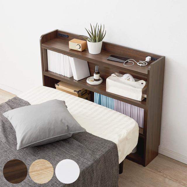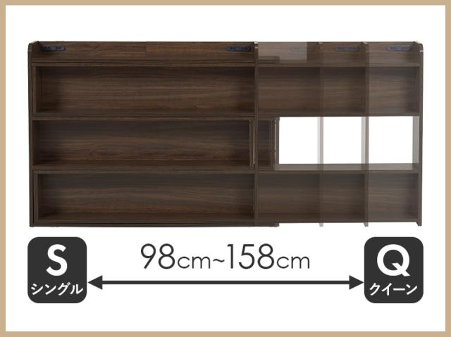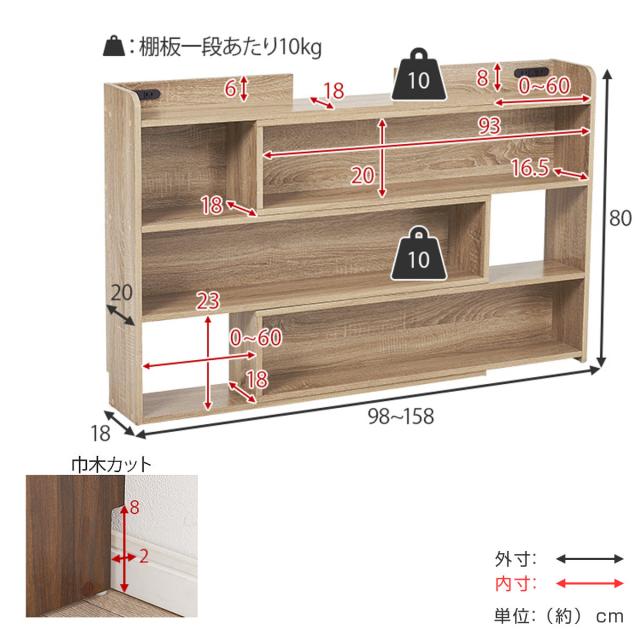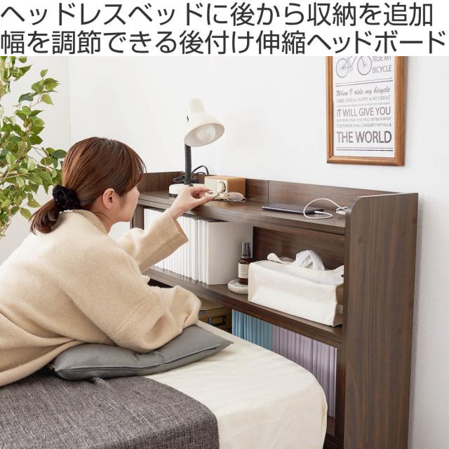 伸縮ヘッドボード 98〜158cm 2口コンセント クイーンサイズ対応 ( 伸縮 後付 棚 ラック コンセント付 クイーン 薄型 収納 省スペース ヘッドボードのみ 間仕切 飾り棚 シェルフ )