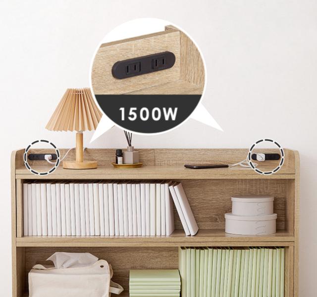 使い勝手の良い2口コンセントが両端に付いているので、充電や照明など同時に電源を使用することができます。ホコリが入りにくいスライド式なのも嬉しいポイントです。