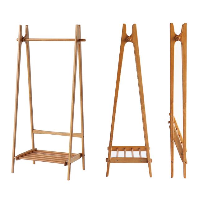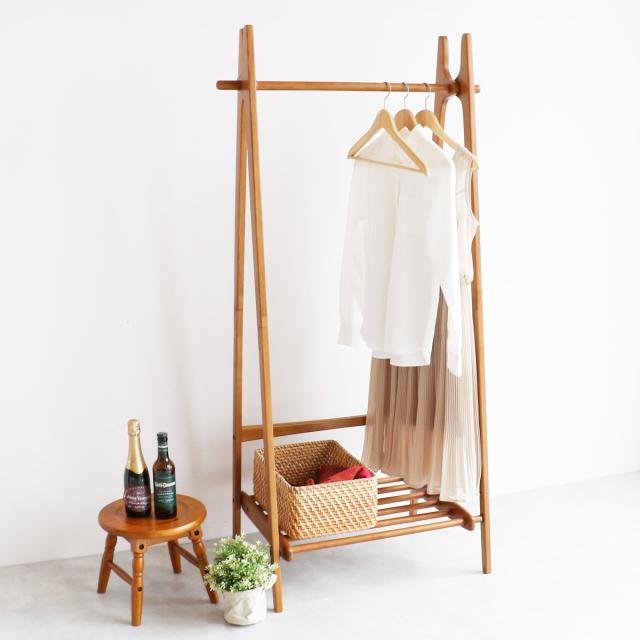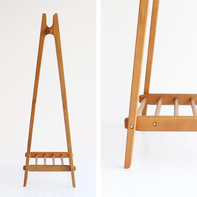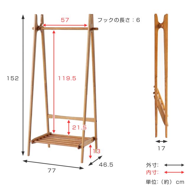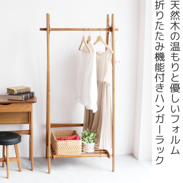 ハンガーラック 幅77cm 折り畳める 天然木 ( ハンガー ラック 折りたたみ コート掛け 収納 家具 棚付 衣類 ポールハンガー 洋服収納 コートハンガー 省スペース A型 ロング丈 )