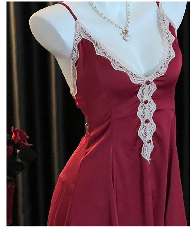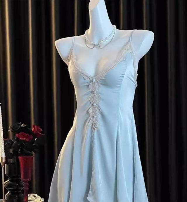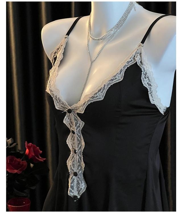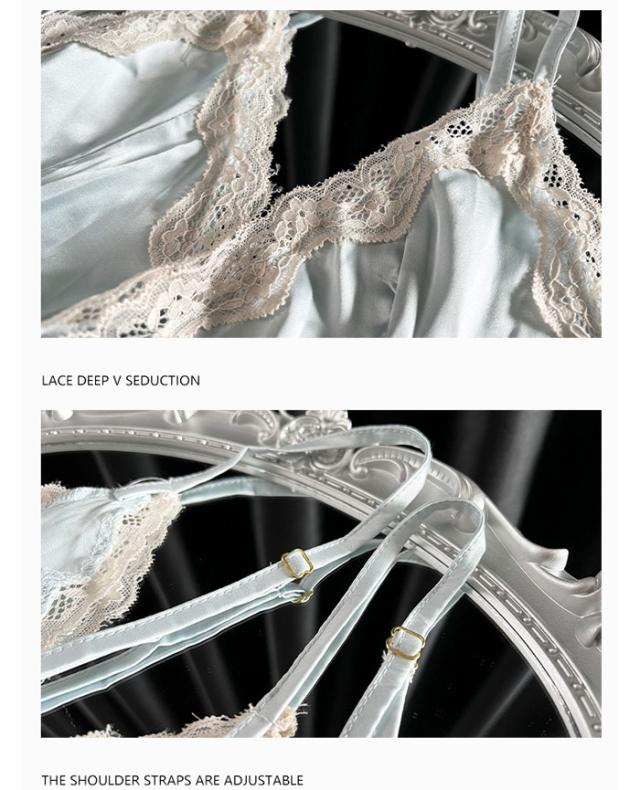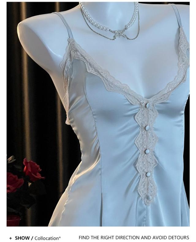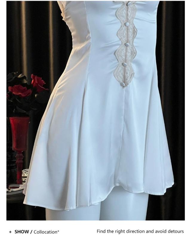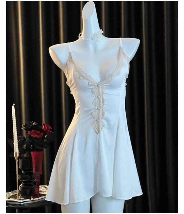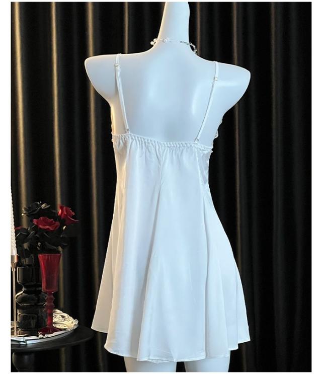 ナイトウェア ネグリジェ 寝巻き ルームウェア レース胸元 キャミソール ガウン vネック ホワイト 花柄刺繍 シースルー セクシー dh055zbzblc
