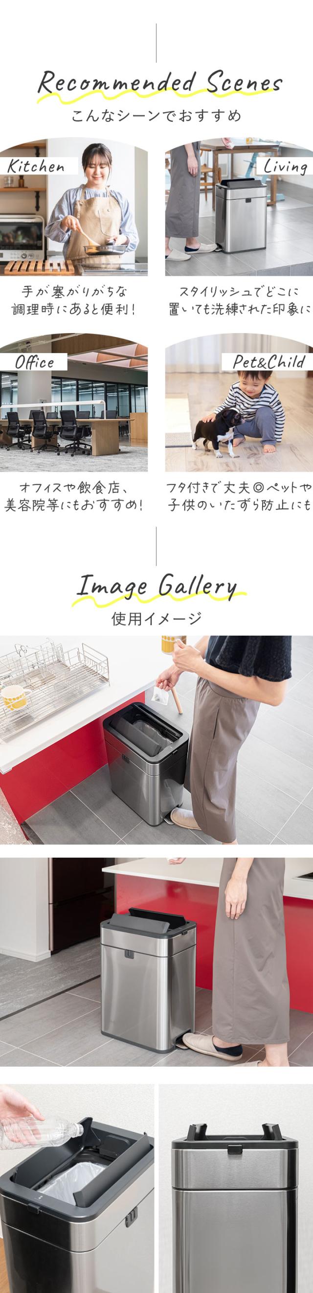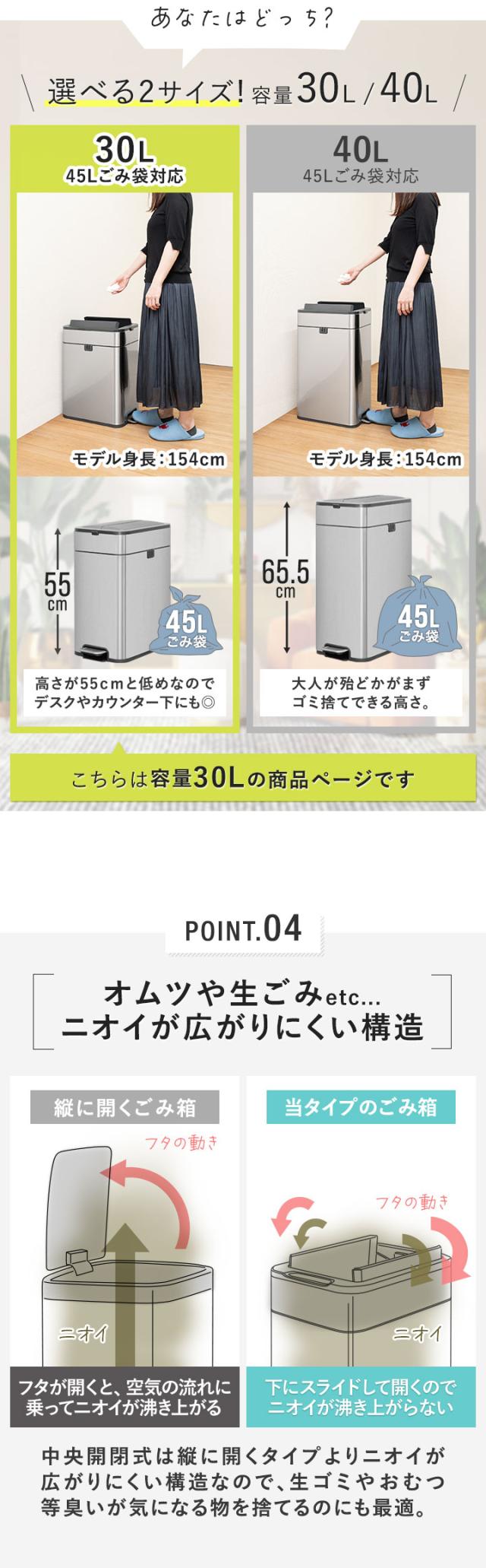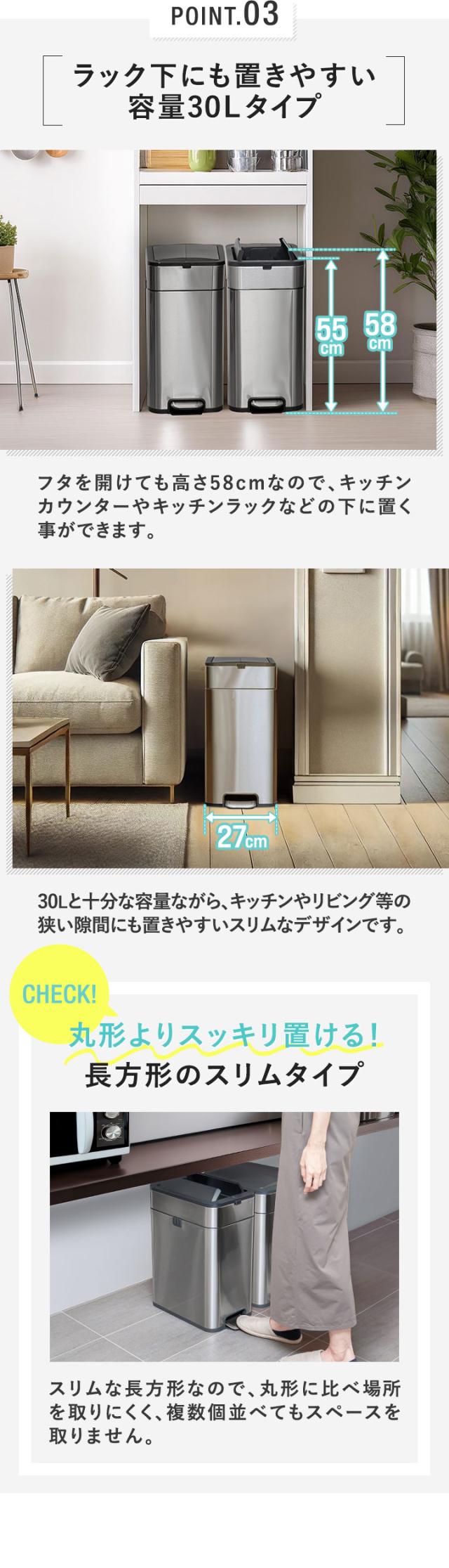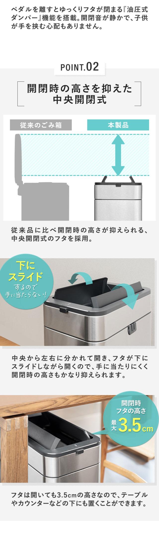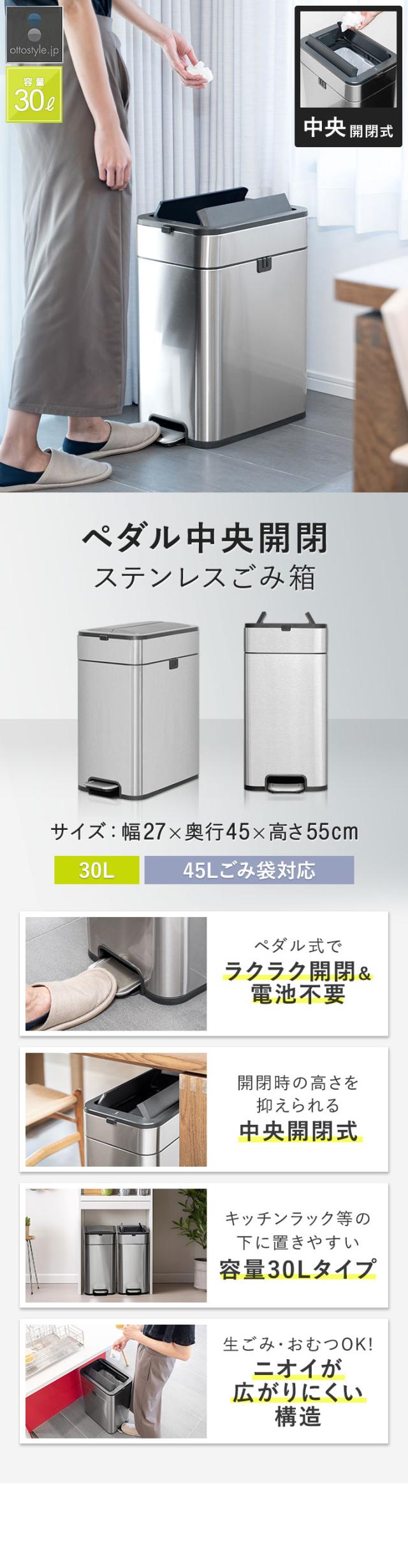 ゴミ箱 ステンレス スリム ペダル 中央開閉式 30L ごみ箱 ダストボックス ふた付き 両開き 衛生 防臭 臭わない キッチン 台所 シンプル インテリア 隙間 角型 スクエア 縦型 45Lゴミ袋対応 袋が見えない 静音 静か おしゃれ ハンズフリー 1年保証 送料無料