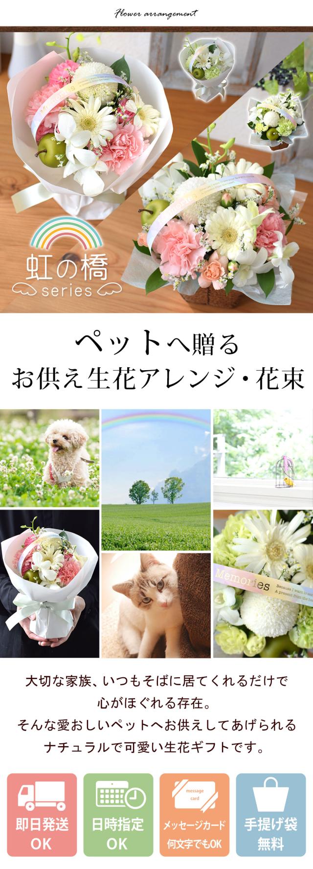 お供え ペット お悔やみ 花 ペットに贈る お供え生花アレンジメント 花束 そのままブーケ 選べる「虹の橋シリーズ」 ピンク グリーン 御供 虹の橋 ペット供養 仏花 ギフト ブーケ お供え花 お供え物 一周忌 三回忌 命日 ワンちゃん ネコちゃん 喪中見舞い 年末 お見舞い