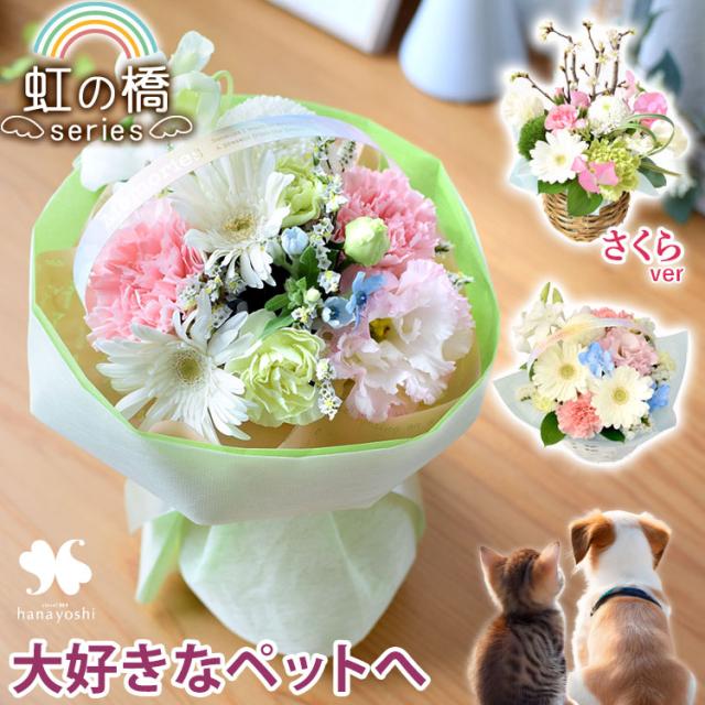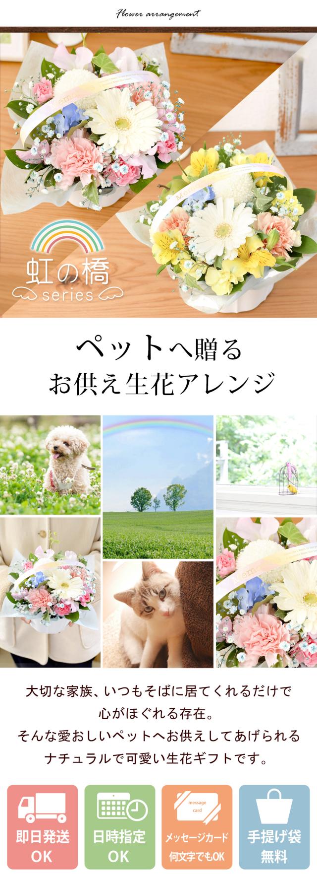 お供え ペット お悔やみ 花 ペットに贈る お供え生花アレンジメント「虹の橋シリーズ」 ピンク イエロー 御供 虹の橋 ペット供養 仏花 ギフト バスケット お供え花 お供え物 一周忌 三回忌 命日 ワンちゃん ネコちゃん 喪中見舞い お見舞い お彼岸