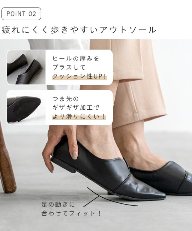 ローファー フラットシューズ レディース スリット 痛くない 疲れない ぺたんこ 黒 ポインテッドトゥ 送料無料