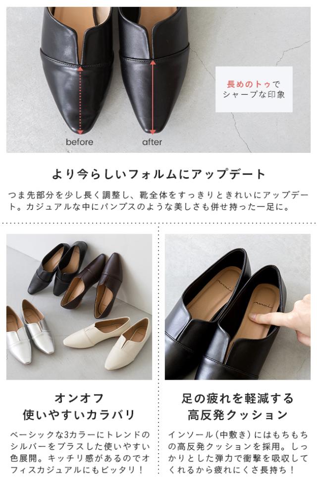 甲のカッティングが足をきれいに見せてくれる、人気のフラットシューズが履き心地を上げてリニューアル!