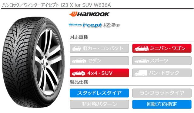 2本以上で送料無料 2025年製 スタッドレスタイヤ 235/55R19 105H XL ハンコック ウィンターアイセプト iZ3 X for SUV W636A HANKOOK Winter i cept iZ3 X for SUV W636A