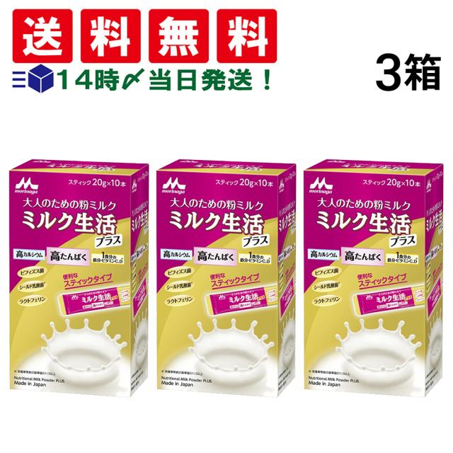 【 送料無料 】 森永乳業 大人のための 粉ミルク ミルク生活 プラス スティック タイプ (1箱 20g ×10本入) ×3箱 セット 大人用 ミルク 高たんぱく 高カルシウム