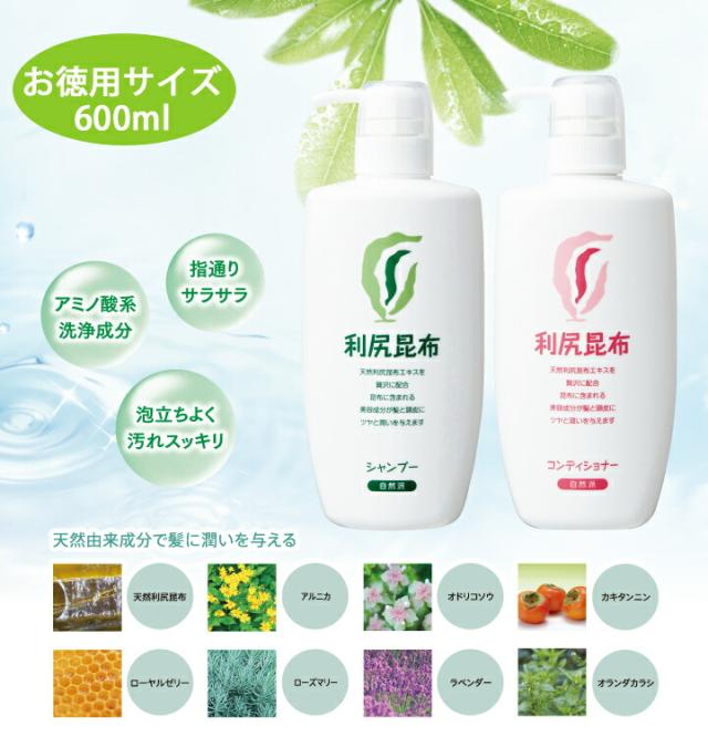 利尻シャンプー&コンディショナー お徳用2本セット 無添加 天然由来 植物由来 シャンプー コンディショナー 低刺激 利尻昆布 敏感肌 ノンシリコン スカルプ 頭皮 ケア アミノ酸 ダメージ 頭皮に優しい 補修 赤ちゃん 子供 まとめ買い カラートリートメント 色持ち 正規品