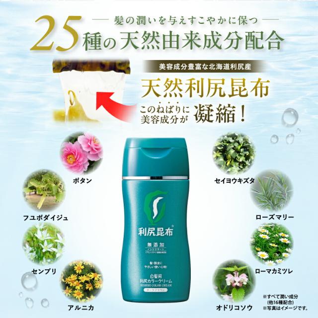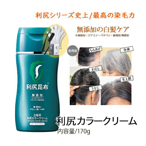 白髪染め 利尻カラークリーム (170g) サロン級の染め上がり ヘアマニキュア 無添加 植物由来 ヘアカラー クリーム 低刺激 利尻昆布 ノンジアミン ノンシリコン ダメージ 補修 潤い成分 傷まない 臭わない ヘア ケア 全体染め 深染め ブラウン ブラック 正規品