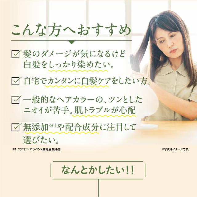 - 自分で白髪染めをするようになってこれはかかせますん。嫌な臭いもしないし、慣れるとわりと簡単に。 コンデショナーのサンプルもたくさん入れてくれて嬉しいです。迅速な対応もありがとうございました。 せ−ルで...