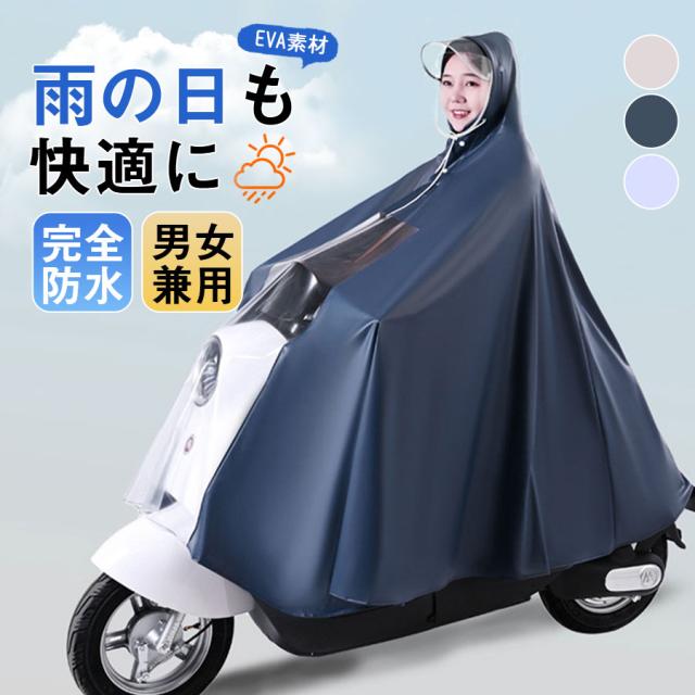 レインコート 自転車 レインポンチョ EVA素材 バイク ロング丈 二重ツバ リュック対応 透明バイザー 携帯 多機能 軽量 雨具