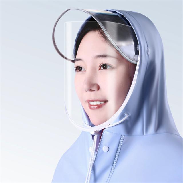 レインコート 自転車 レインポンチョ EVA素材 バイク ロング丈 二重ツバ リュック対応 透明バイザー 携帯 多機能 軽量 雨具