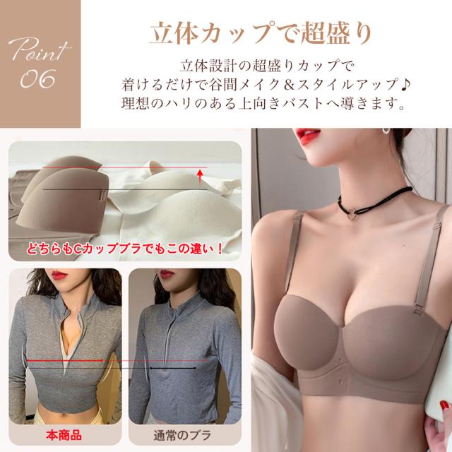 ブラ ノンワイヤー ストラップレス レディース インナー 下着 ブラジャー 脇高 盛れる 谷間 盛りブラ 紐無し ドレス シームレス 大きいサイズ 送料無料