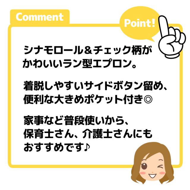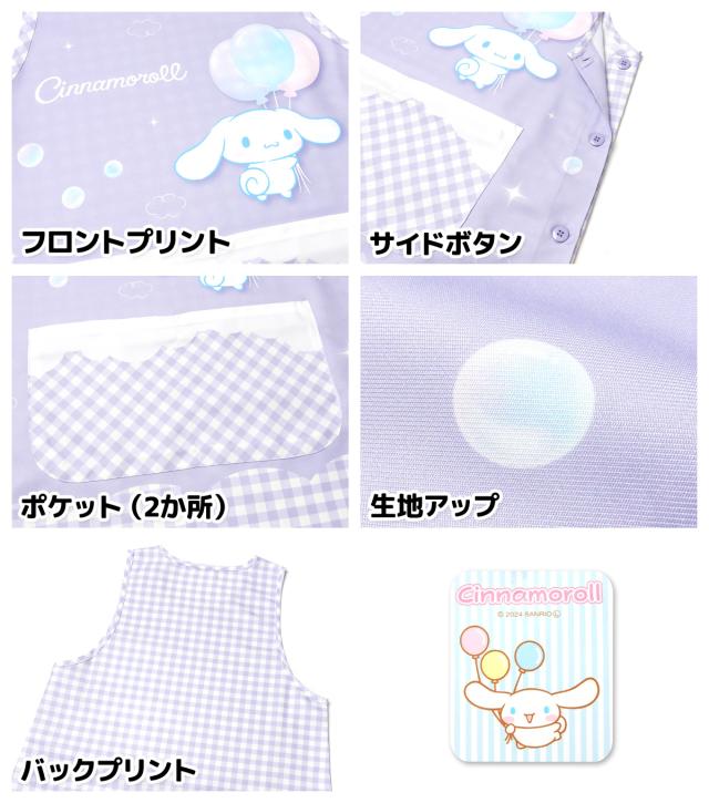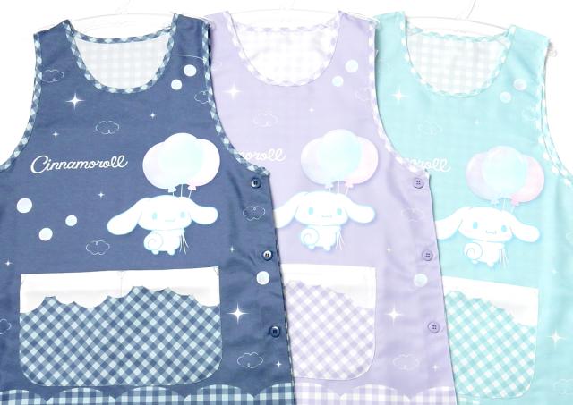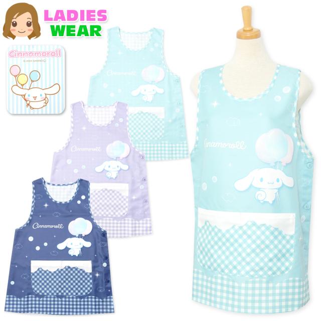【送料無料】婦人 レディース 保育士 ラン型 エプロン Sanrio サンリオ シナモロール サイドボタン留め ポケット付き 大人用 M-L sl-0495【メール便対応】