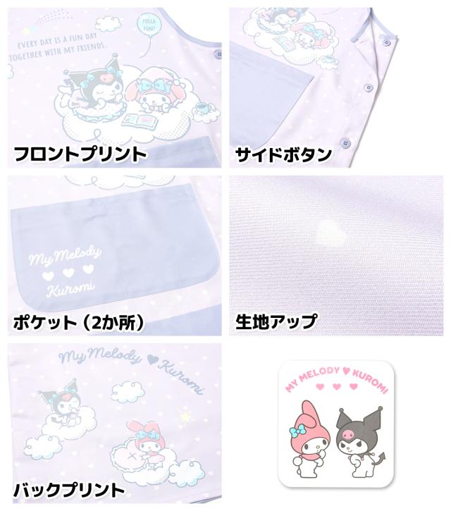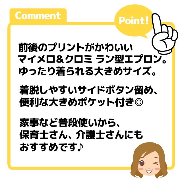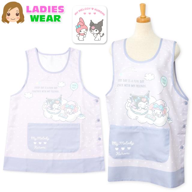 【送料無料】【大きいサイズ】婦人 レディース 保育士 ラン型 エプロン Sanrio/サンリオ マイメロディ クロミ サイドボタン留め ポケット付き 大人用 LL-3L 3L-4L sl-0502【メール便対応】