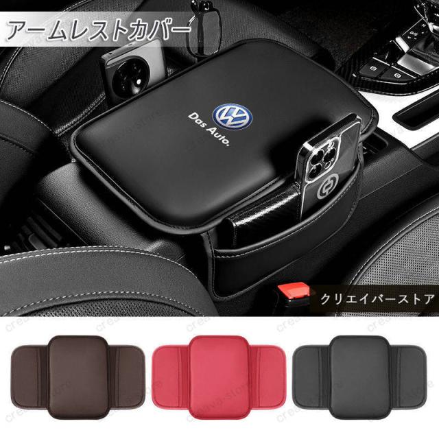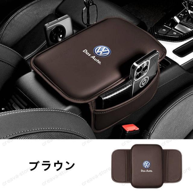 フォルクスワーゲン VOLKSWAGEN アームレストカバー コンソールボックスクッション パッド レザー 収納袋付き 小物入れ可 3色 車内アクセサリー