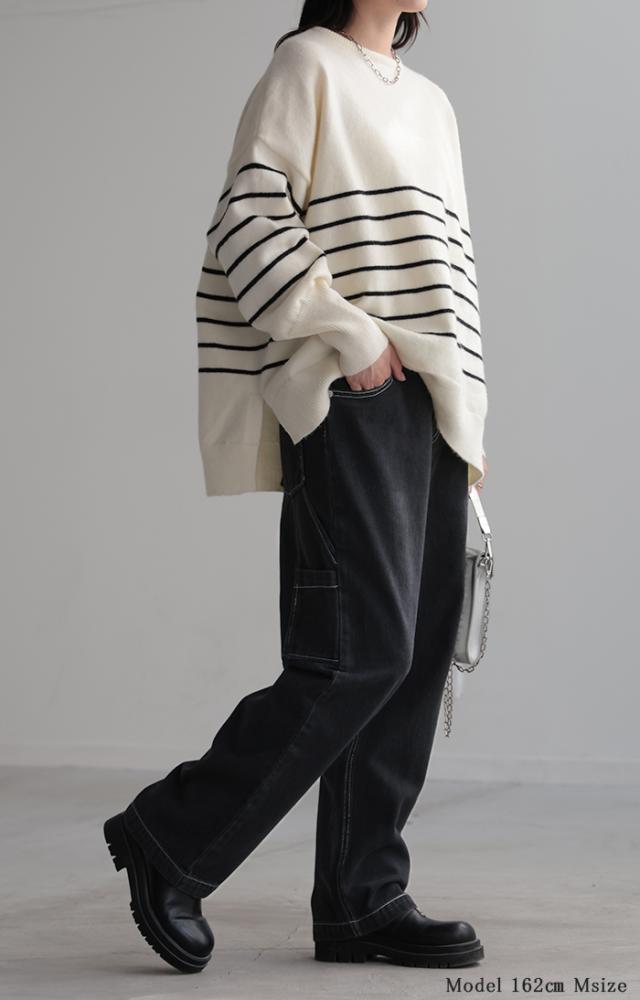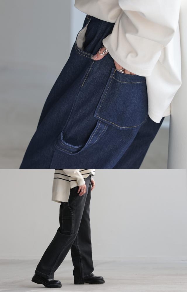 配色ステッチとワークポケットがアクセントのペインターデニムパンツです。