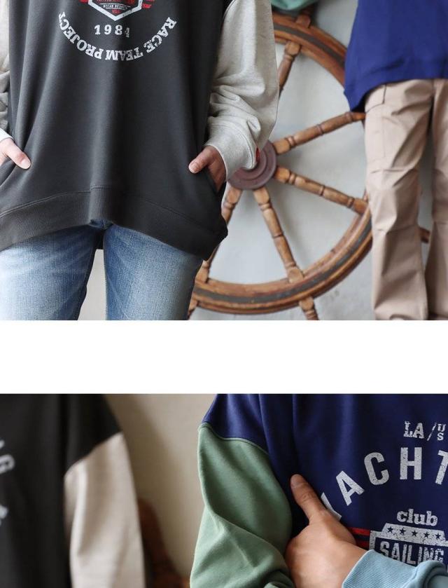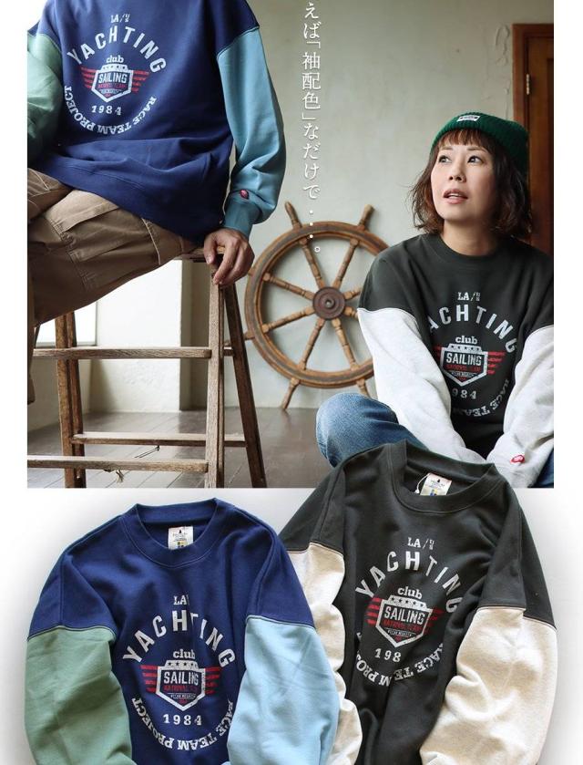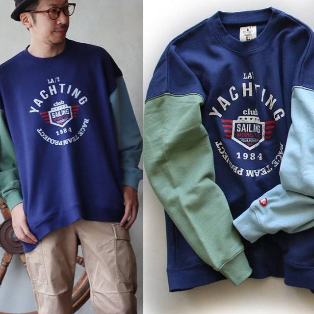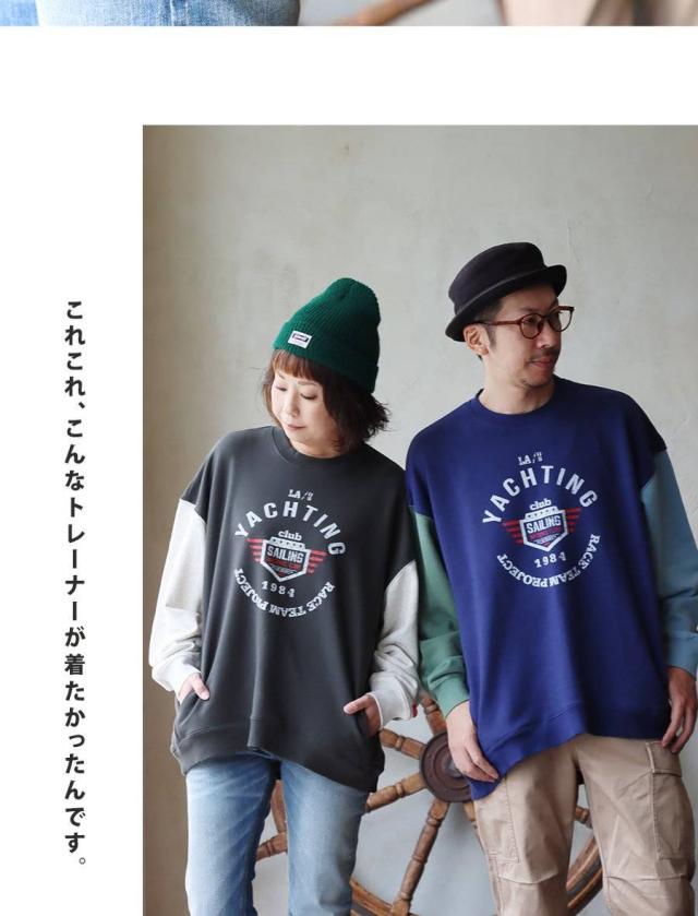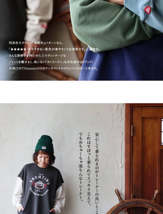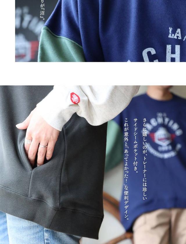 トレーナー 裏毛 秋 スウェット ワイド すっきり 着痩せ プリント ビッグシルエット 体系 お尻 隠れ カバー メンズ レディース 大きいサイズ 長袖 ポケット 柔らか 薄手 軽い リブ クルーネック 袖切替 クレイジー スエット パティ TOneontoNE トーン