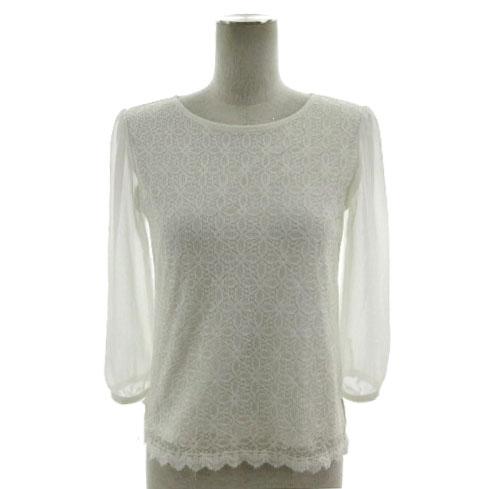 【中古】コムサイズム COMME CA ISM ブラウス レース切替え シースルースリーブ 七分袖 ホワイト 白 レディース